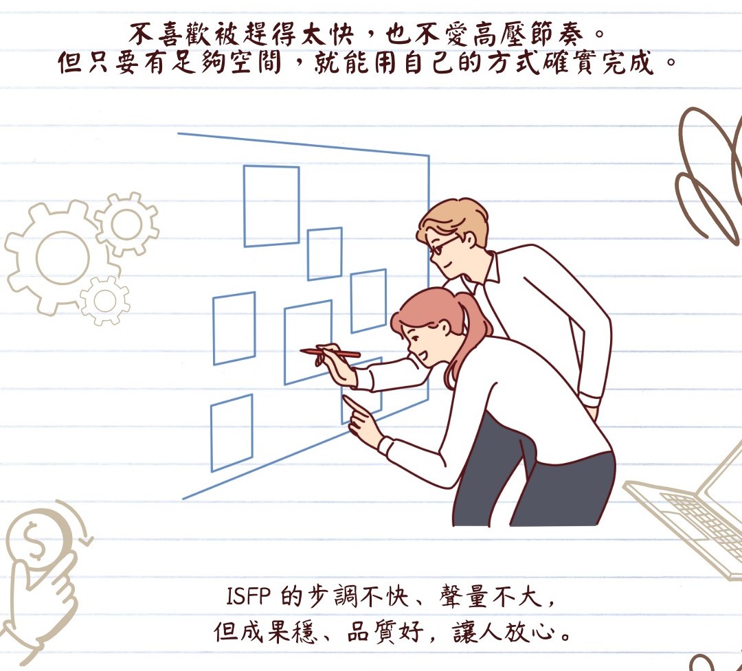 在快速變動的職場裡,每個人都像被一條看不見的手拉著走。無論是進度、績效還是產出,速度常常被視為最重要的指標。但對 ISFP 來說,工作從來不是越快越好,而是越踏實越能安心。他們不追求喧鬧的舞台,也不依賴聲量,而是在安靜中完成每一項任務。