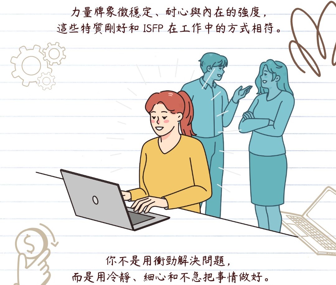 力量牌的核心課題,是穩住自己。對 ISFP 來說,這意味着在工作中要練習相信自己的步調,並能在必要時明確表達立場。